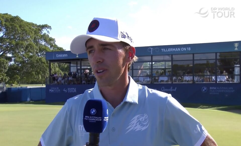 Declaraciones del jugador de La Garriga en el green del dieciocho del Royal Queensland Golf Club de Brisbane, Australia.